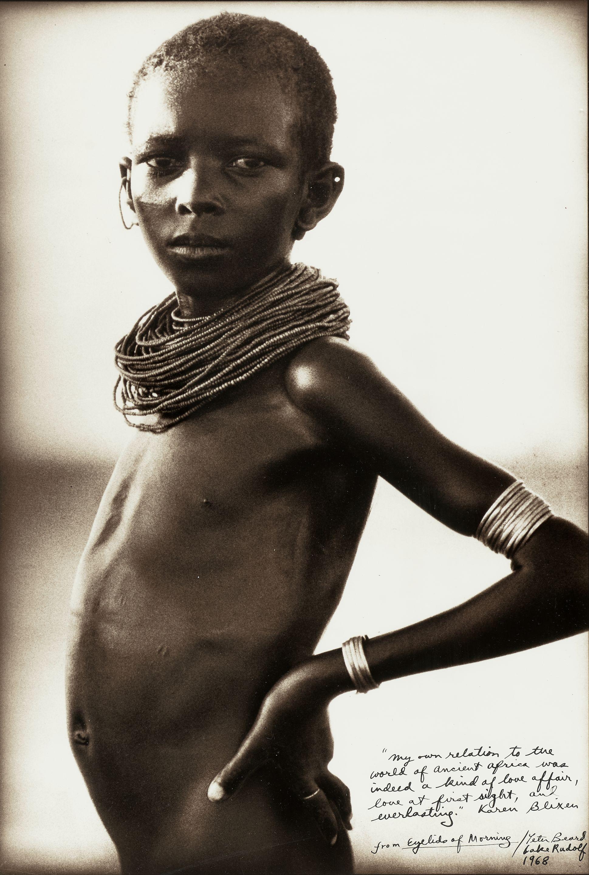 Gelatin silver print, printed later; signed, dated, and annotated with a passage from Karen Blixen's 'Eyelids of Morning' in ink on the image, framed.