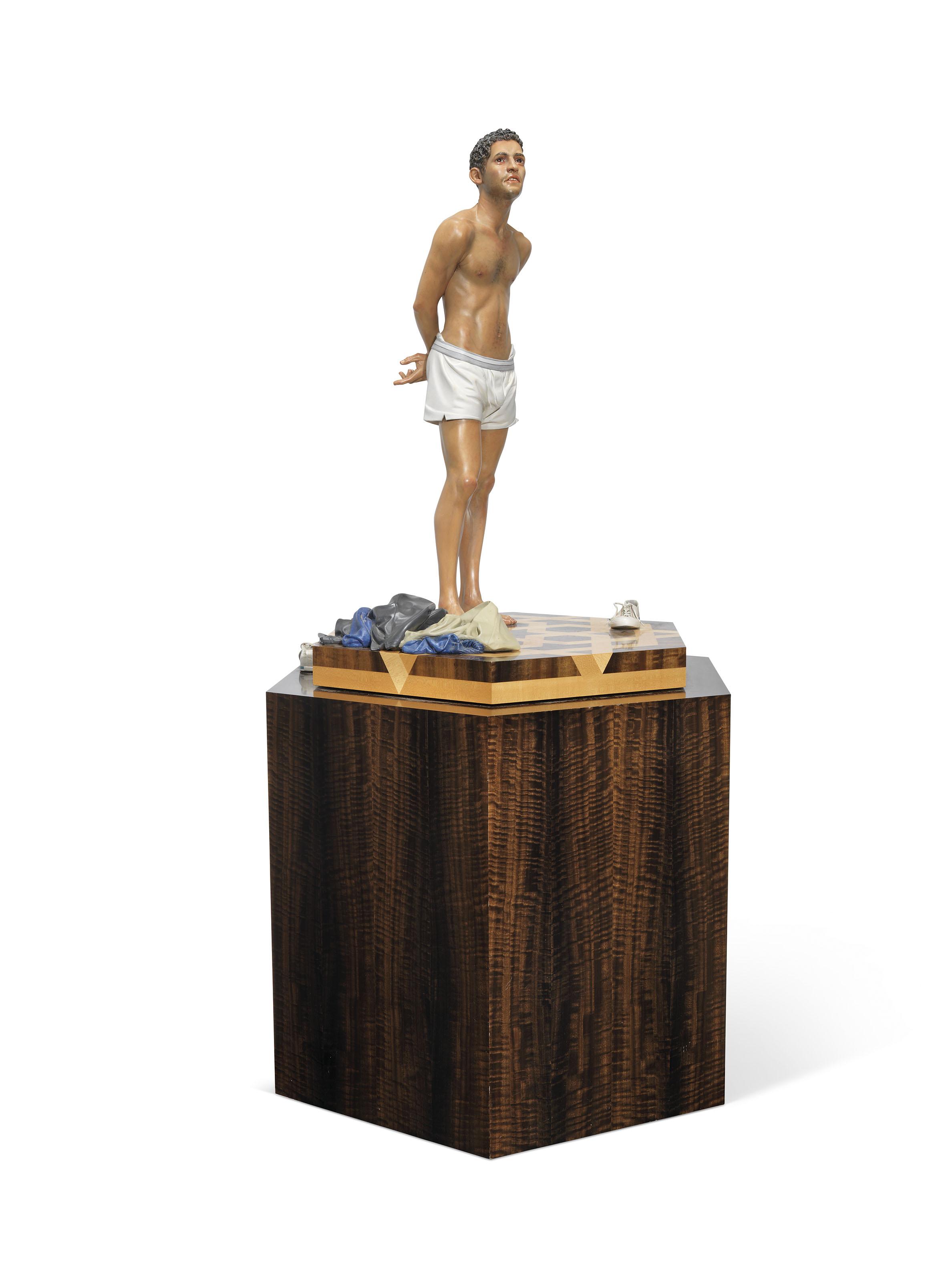 Polychromed limewood, glass and wood veneers