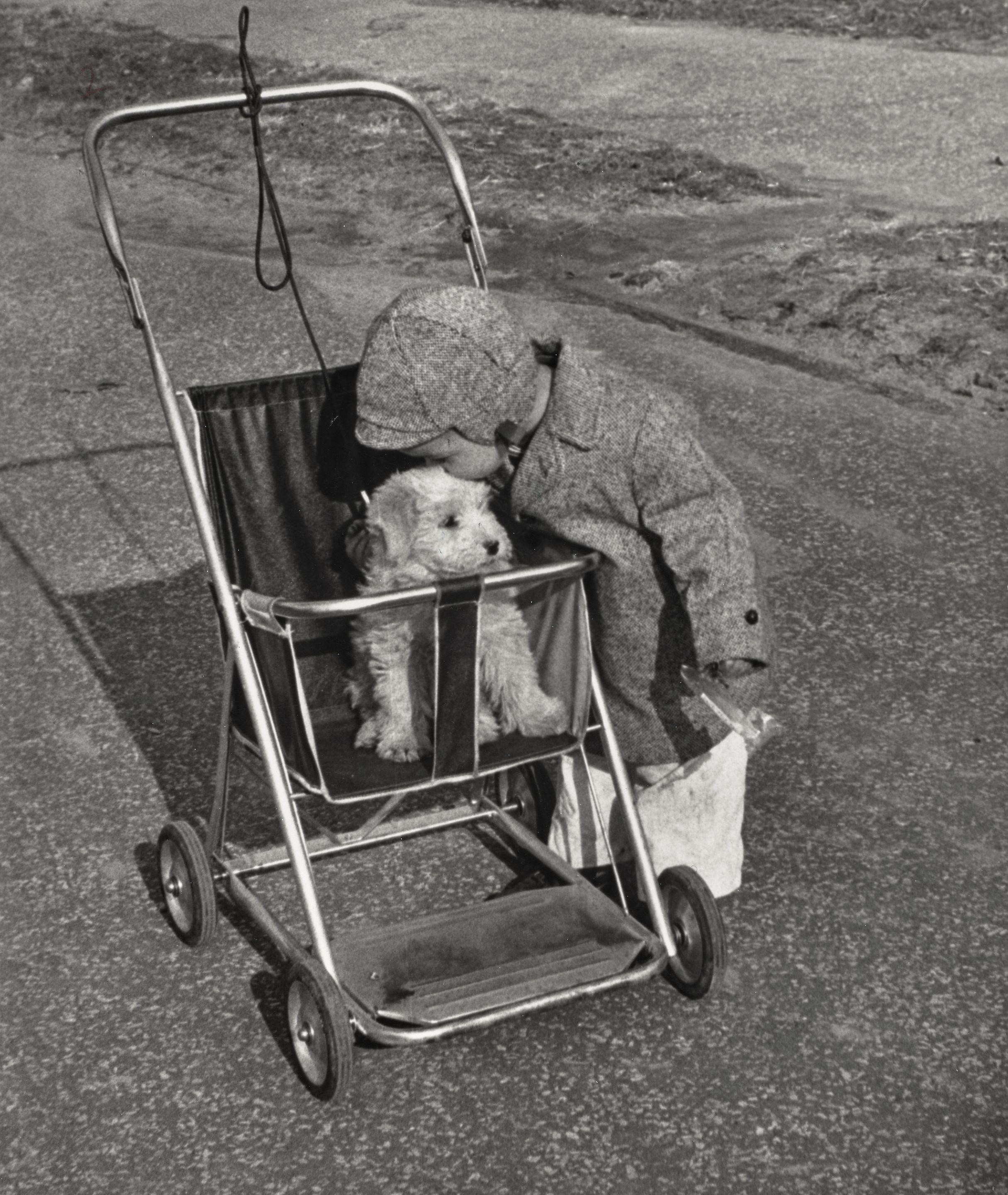 Central Park (Little boy with dog in stroller), New York City, c. 1950