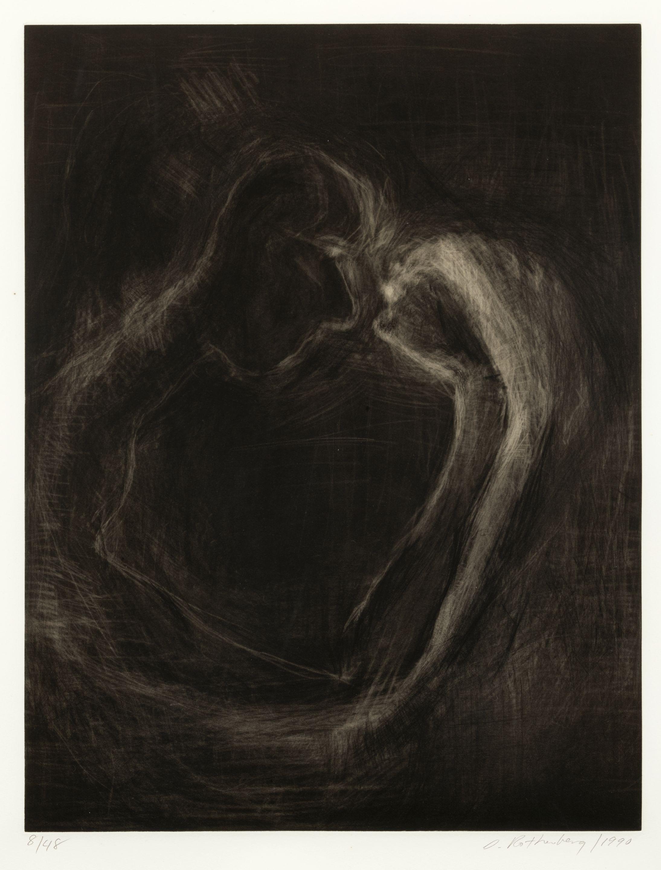 Mezzotint on Gampi paper laid down on J. Whatman paper, signed in pencil, dated and numbered 8/48, with the blindstamp of the publisher/printer, Universal Limited Artist Editions, New York, with full margins, framed.