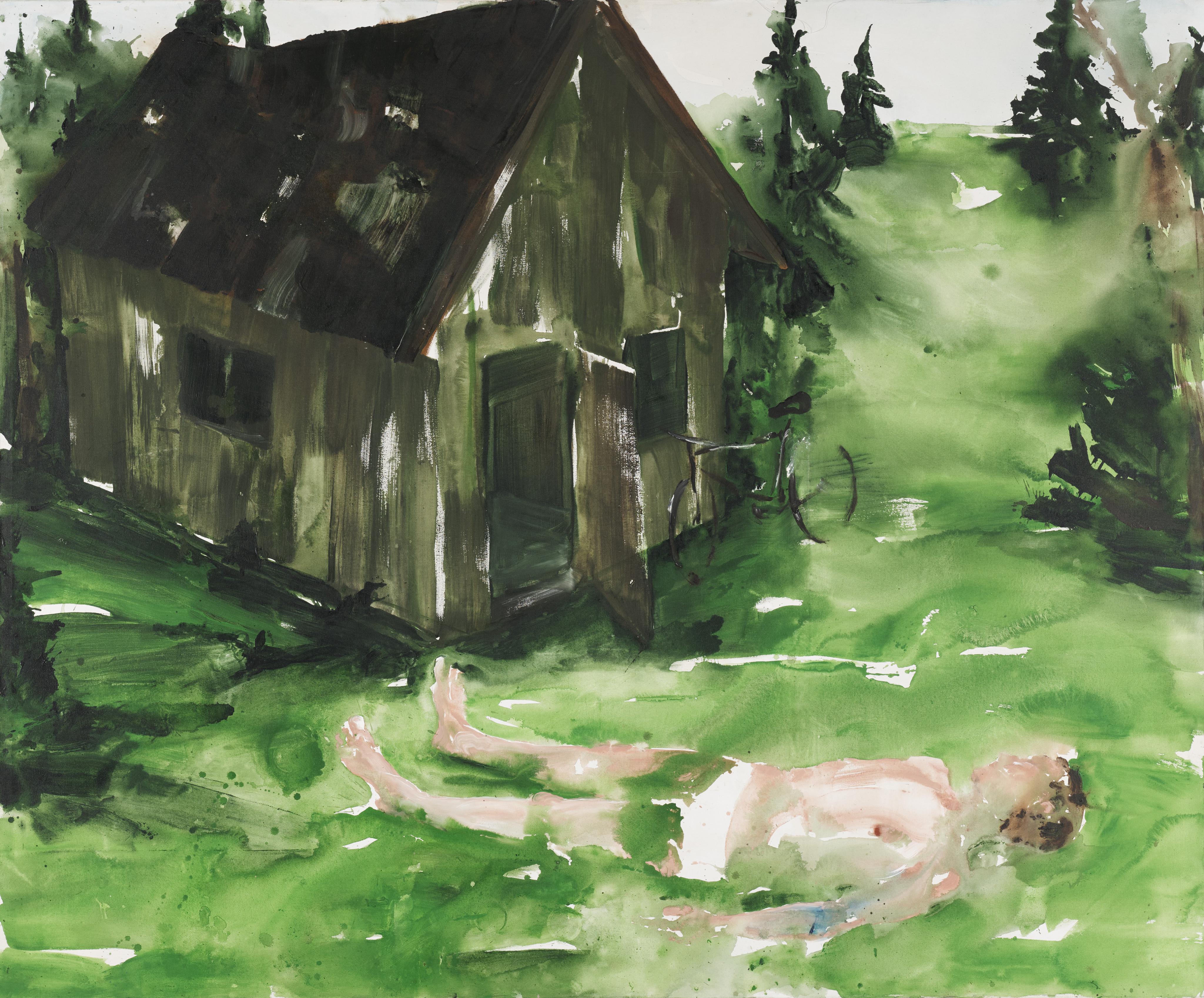 Bezeichnung: Signiert und datiert verso: KRONER 98. Sowie betitelt zweimal auf dem Keilrahmen: Hütte.