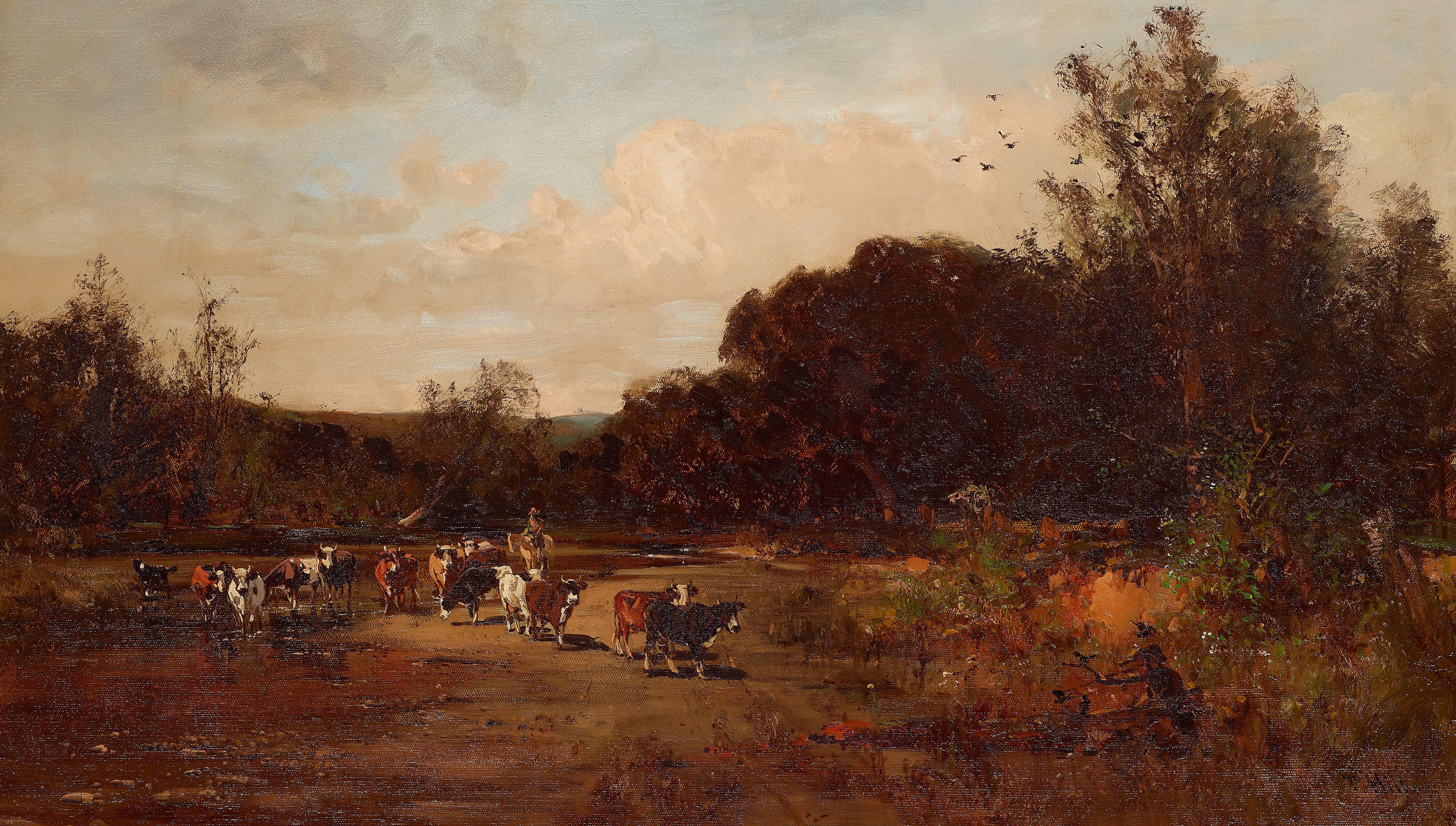 When the work Herding cattle in California by Thomas Hill was auctioned at Bonhams in Los Angeles in August last year, the result was somewhat disappointing. The auction house had previously given the estimated price as a range of USD 15,000.00 – 25,000.00, of which not even the lower limit was reached - in fact, the artwork changed hands for USD 12,750.00 (€ 12,667.66). Of course, this price has nothing to do with the top prices that other works by Thomas Hill achieve. The highest price we have observed so far was reached by the work Hudson River Valley from the Catskill Mountain House in November 2018 with an auction result of USD 372,500.00 (€ 328,976.42).