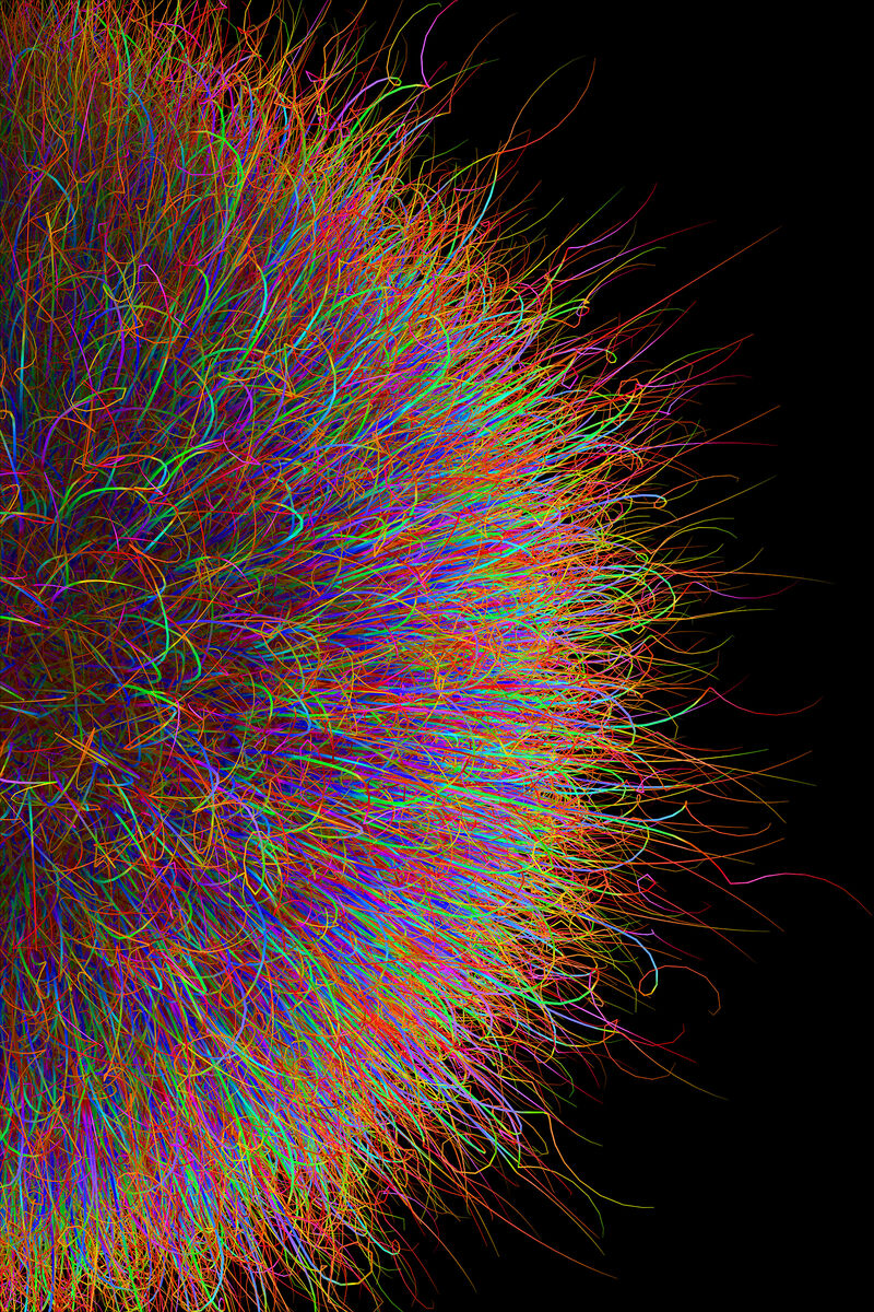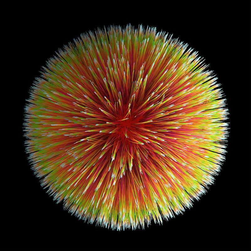 Christoph Pauschenwein is also represented at the exhibition with around 10 works. The artist is showing a selection from his Planets series, whose colors match the spring theme of the show. Just as spring can bring feelings of lightness and the experience of a new world after the winter months, Pauschenwein's unconventional planets offer the opportunity to get to know new worlds. The spherical bodies, which appear hairy, combine organic and artificial elements and raise questions about physical and digital realities. Pauschenwein develops his planets using digital craftsmanship, without the use of AI. In the current exhibition, the artist presents his Planets in custom-made light boxes with dimmable white LED light. The dimming and the varying incoming daylight cause the colors to change and open up new perspectives on the works. Pauschenwein has exhibited the light boxes sporadically since 2020, so the spring exhibition is one of the rarer opportunities to marvel at them.