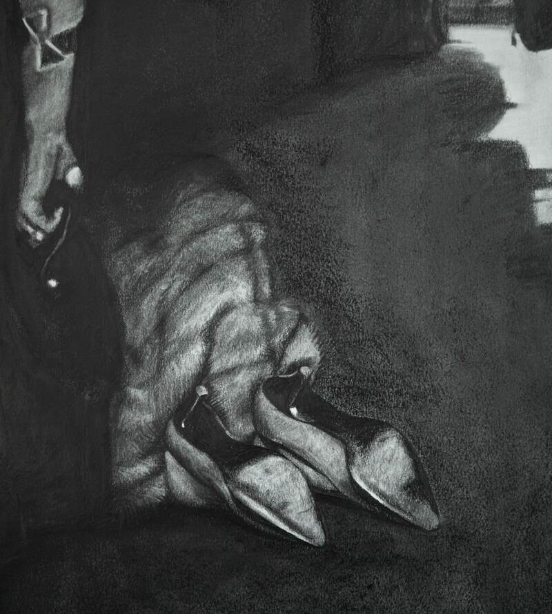 Detail of I walk alone - heels and fur coat of Marlene Dietrich